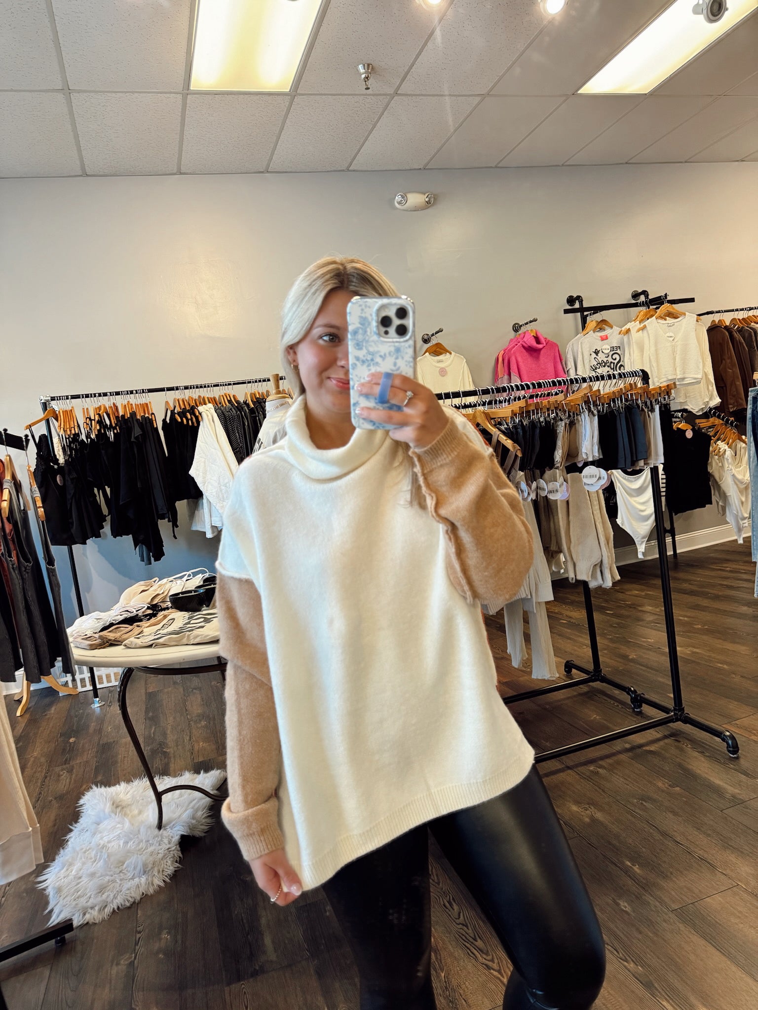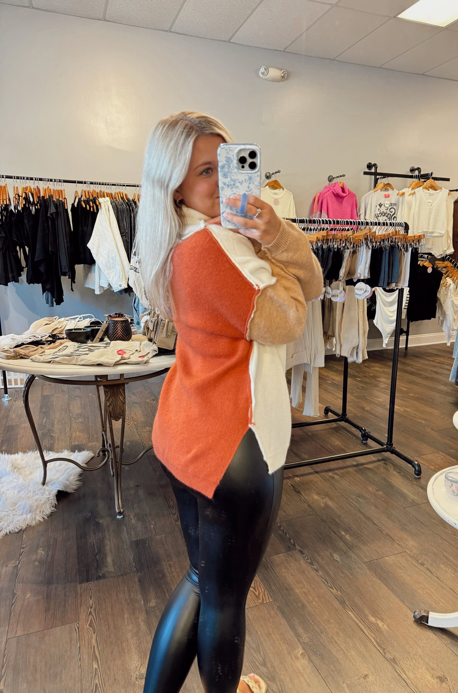 Double the style, double the fun with our Ashton Top! This versatile sweater features a playful turtle neck and vibrant color blocking that can be worn on both sides. Stay cozy and trendy with this must-have addition to your wardrobe.