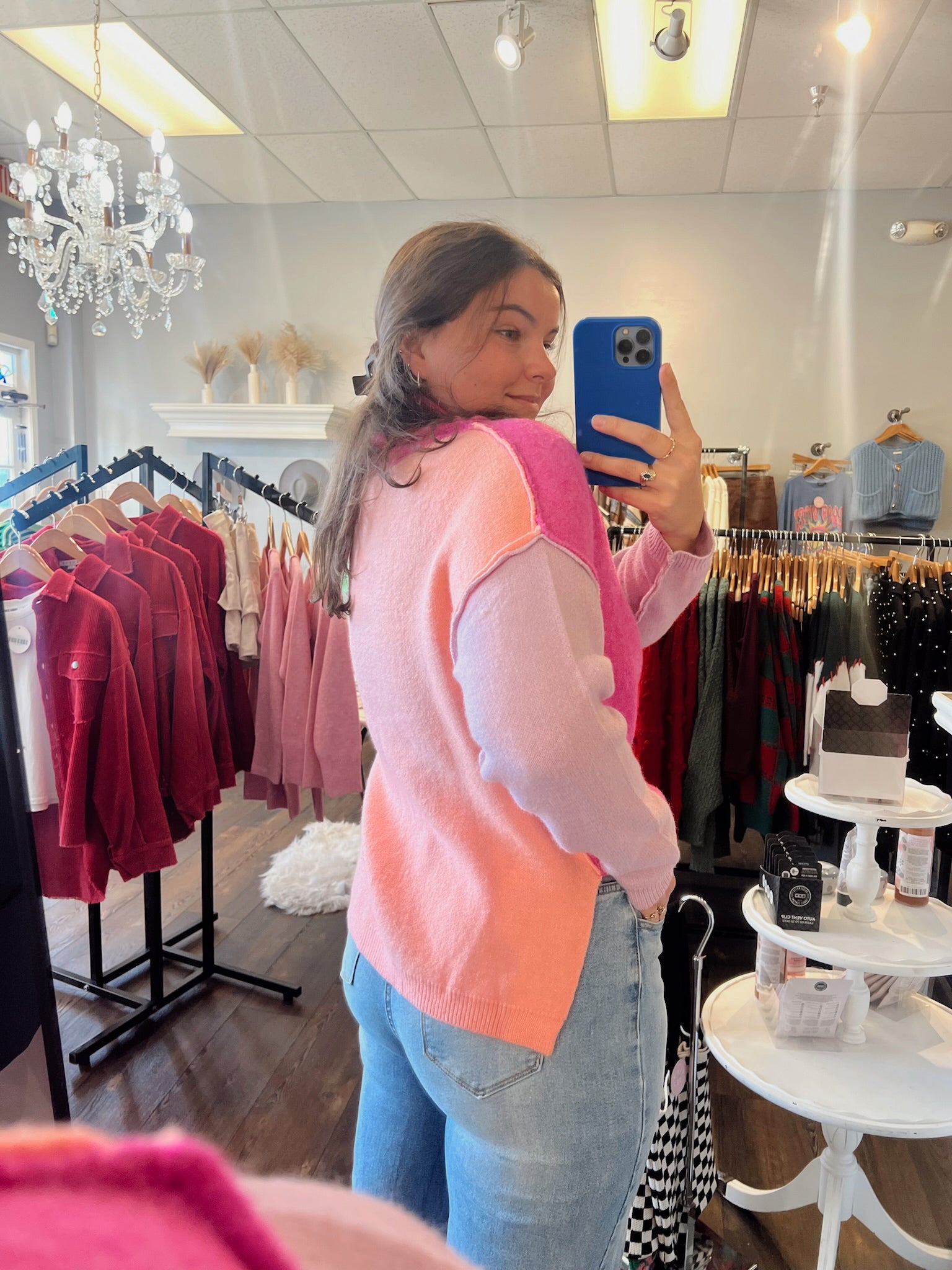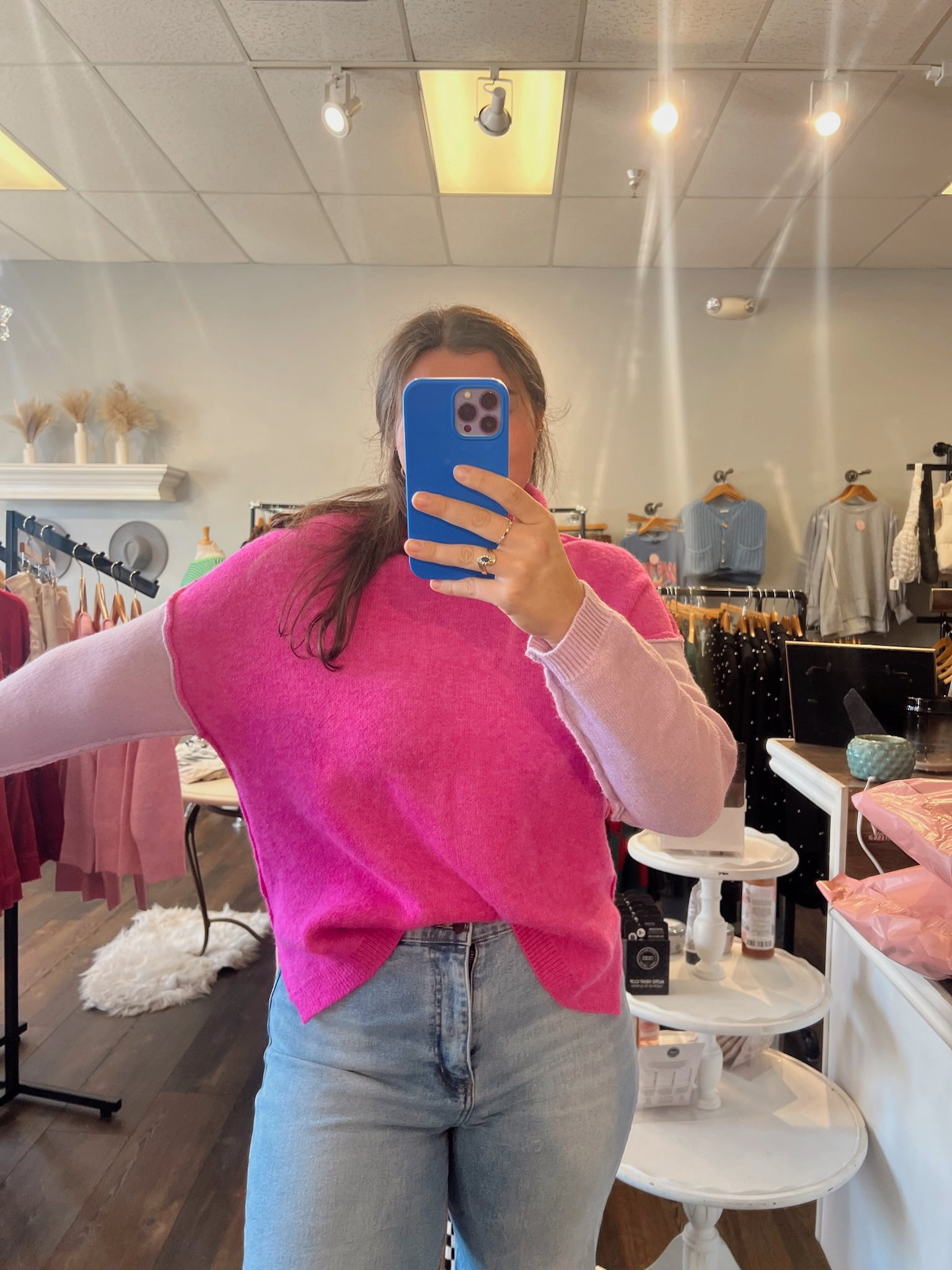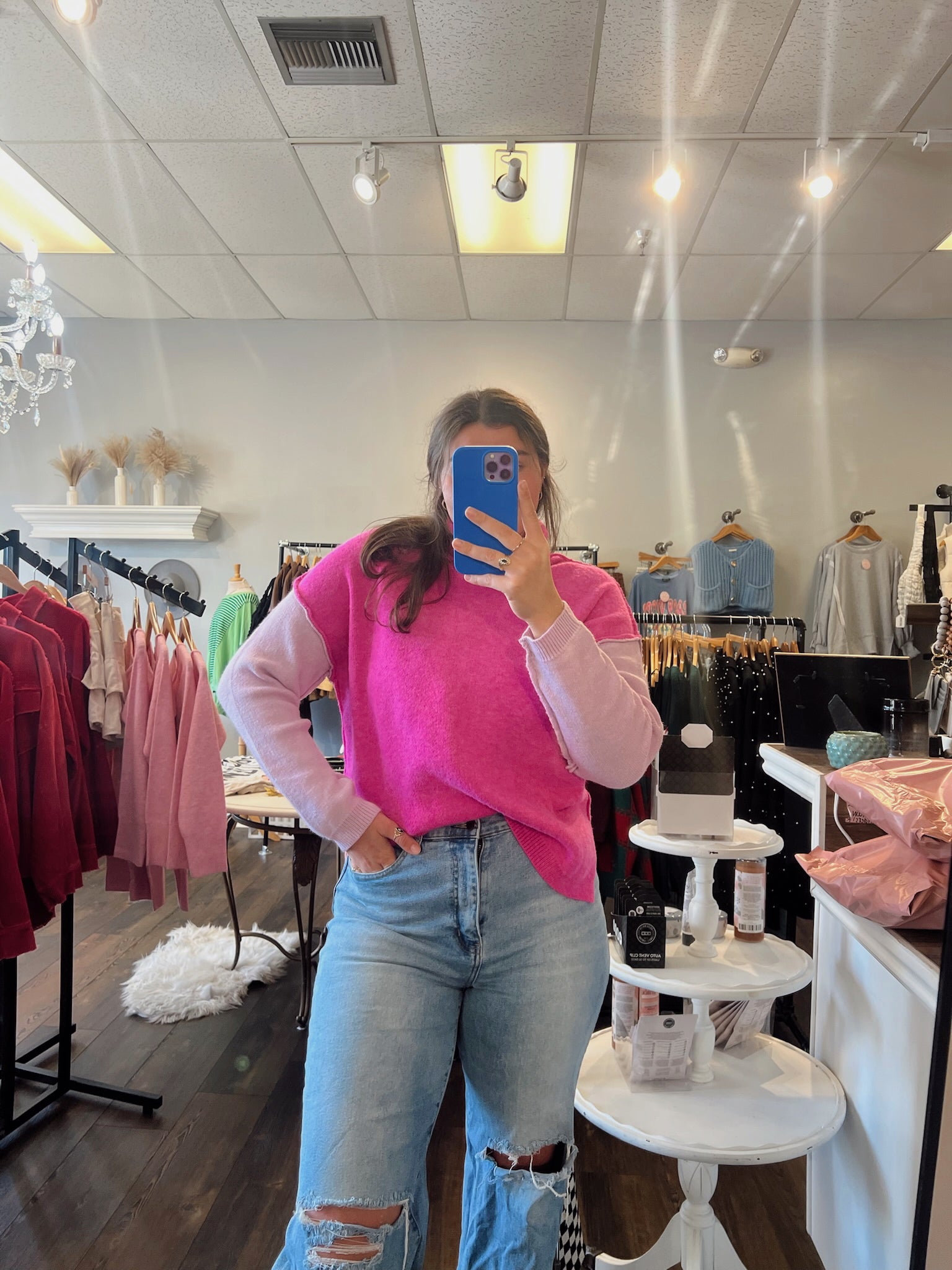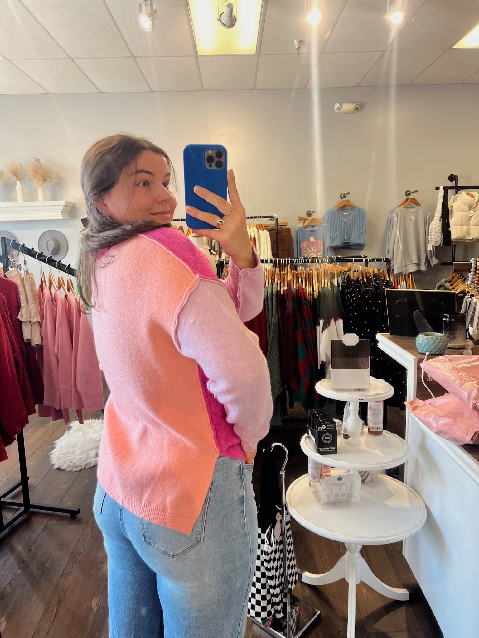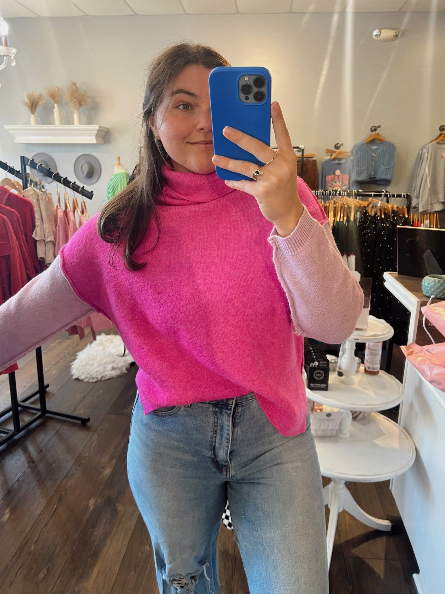 Double the style, double the fun with our Ashton Top! This versatile sweater features a playful turtle neck and vibrant color blocking that can be worn on both sides. Stay cozy and trendy with this must-have addition to your wardrobe.
