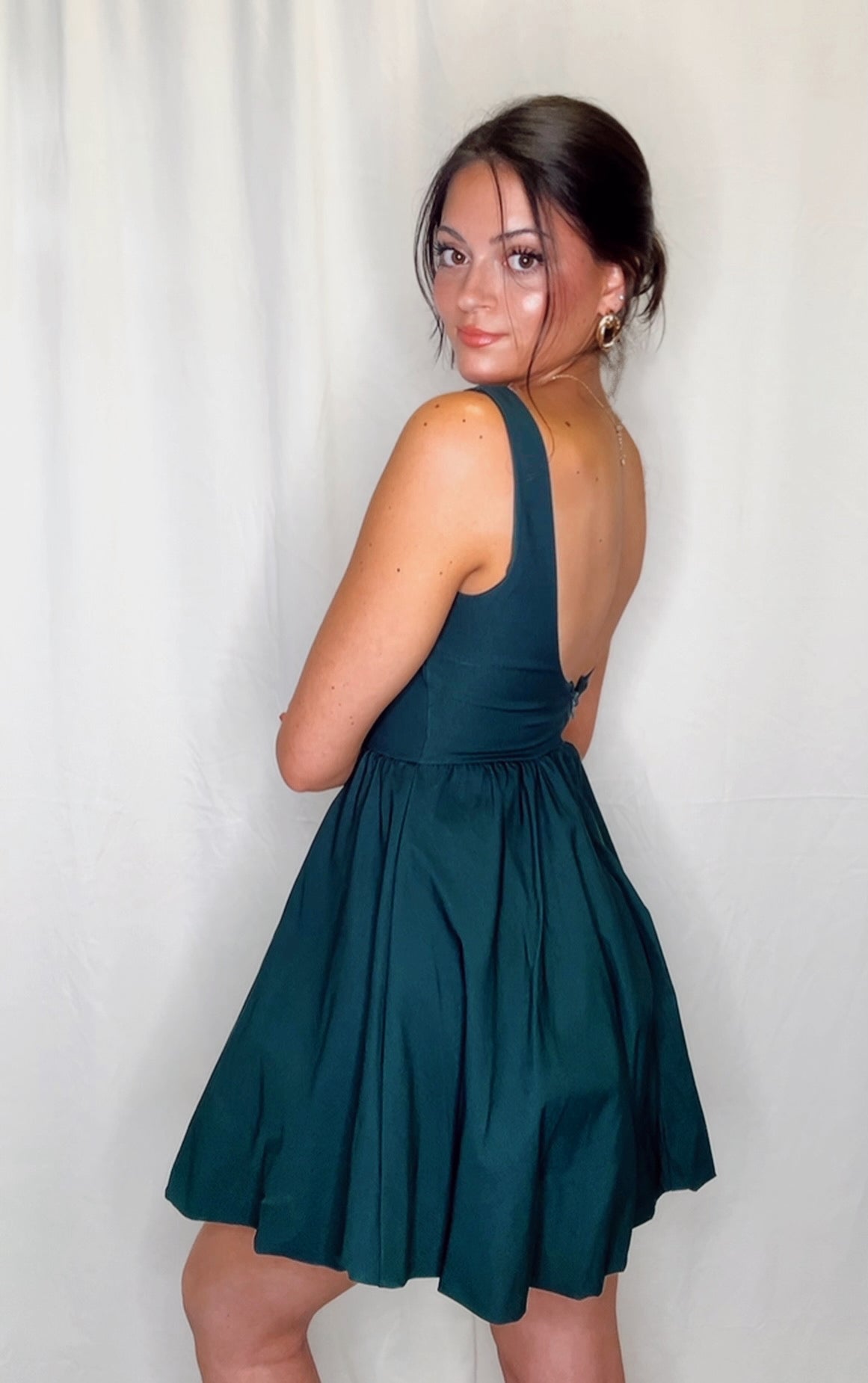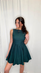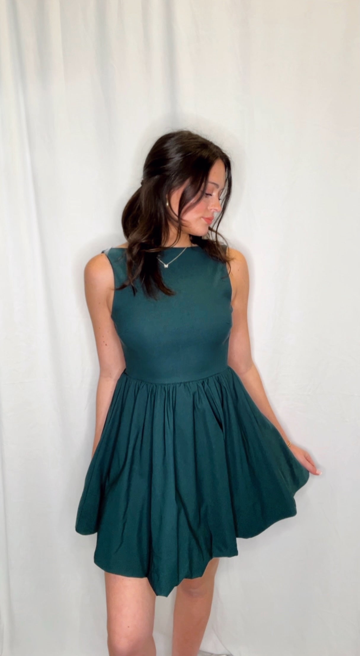 Bubble Hem Boat Neck Mini Dress/ Hunter Green