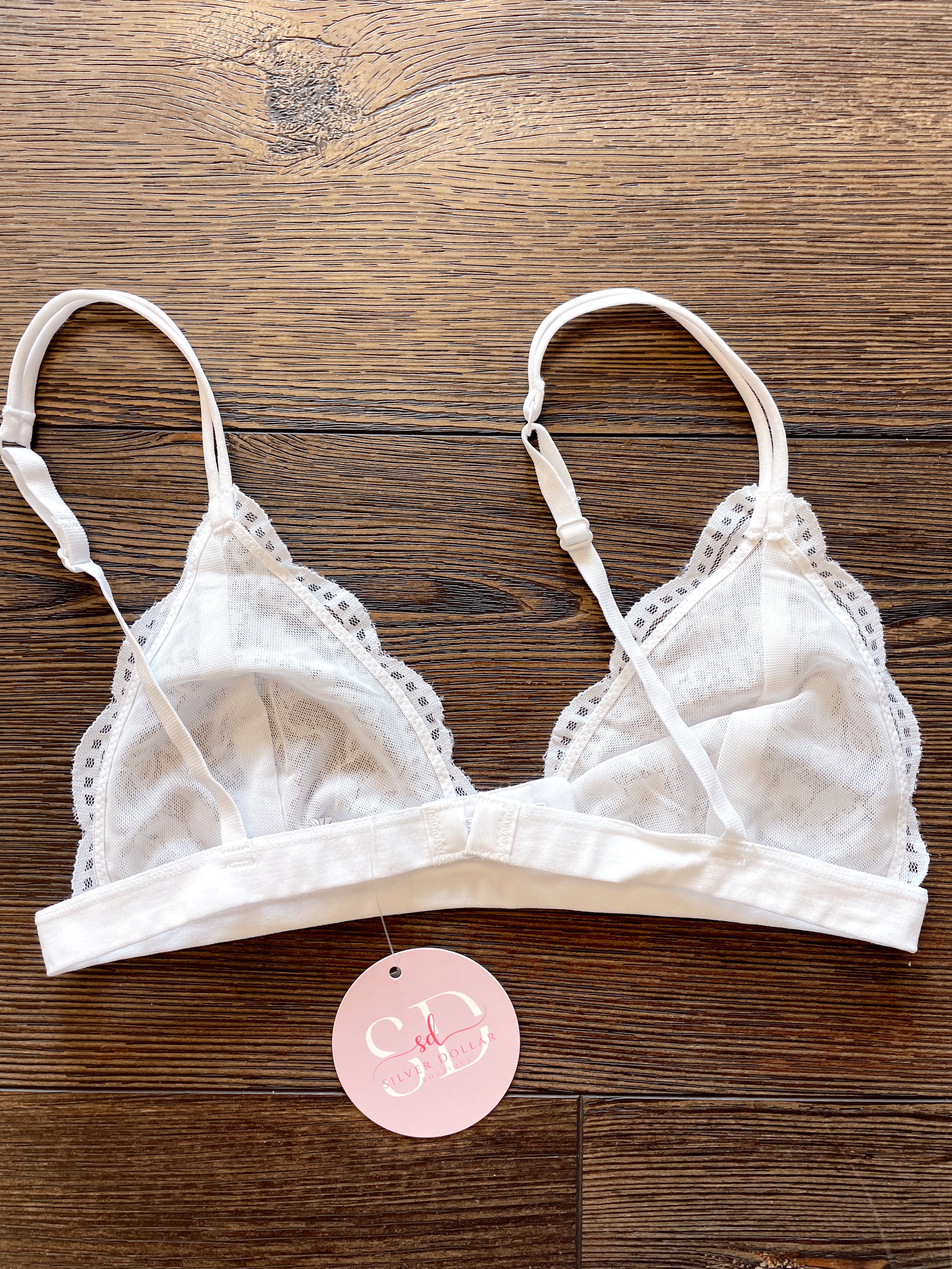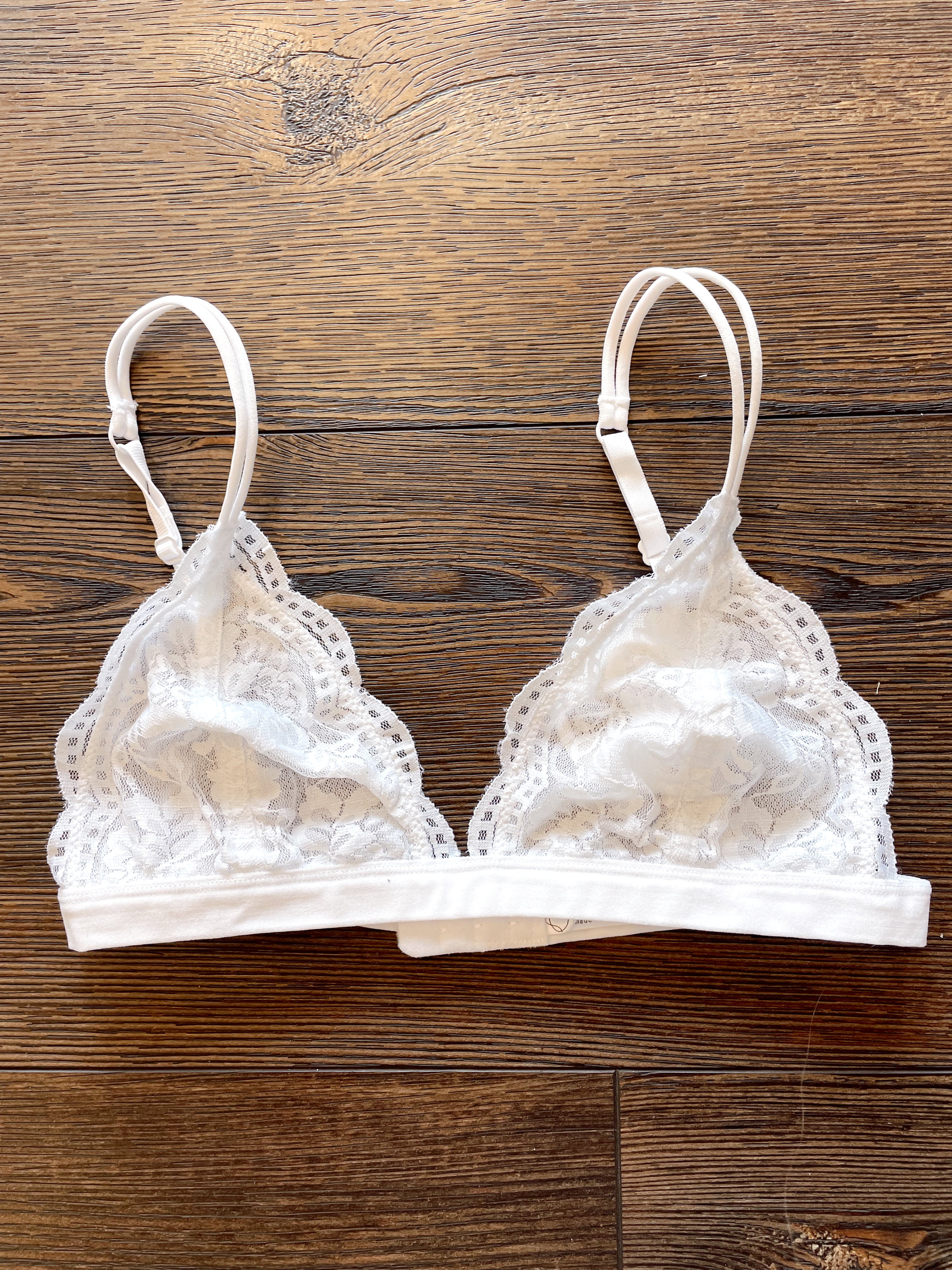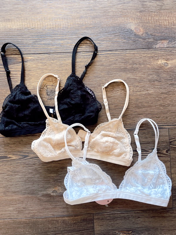 Expertly crafted with 95% nylon and 5% spandex, this Lace Triangle Bralette offers a delicate yet durable floral sheer lace design. Adjustable straps and a back hook closure provide a comfortable and customizable fit. (S/M 32B, 34A, 34B) (M/L 34C, 36B, 36C)