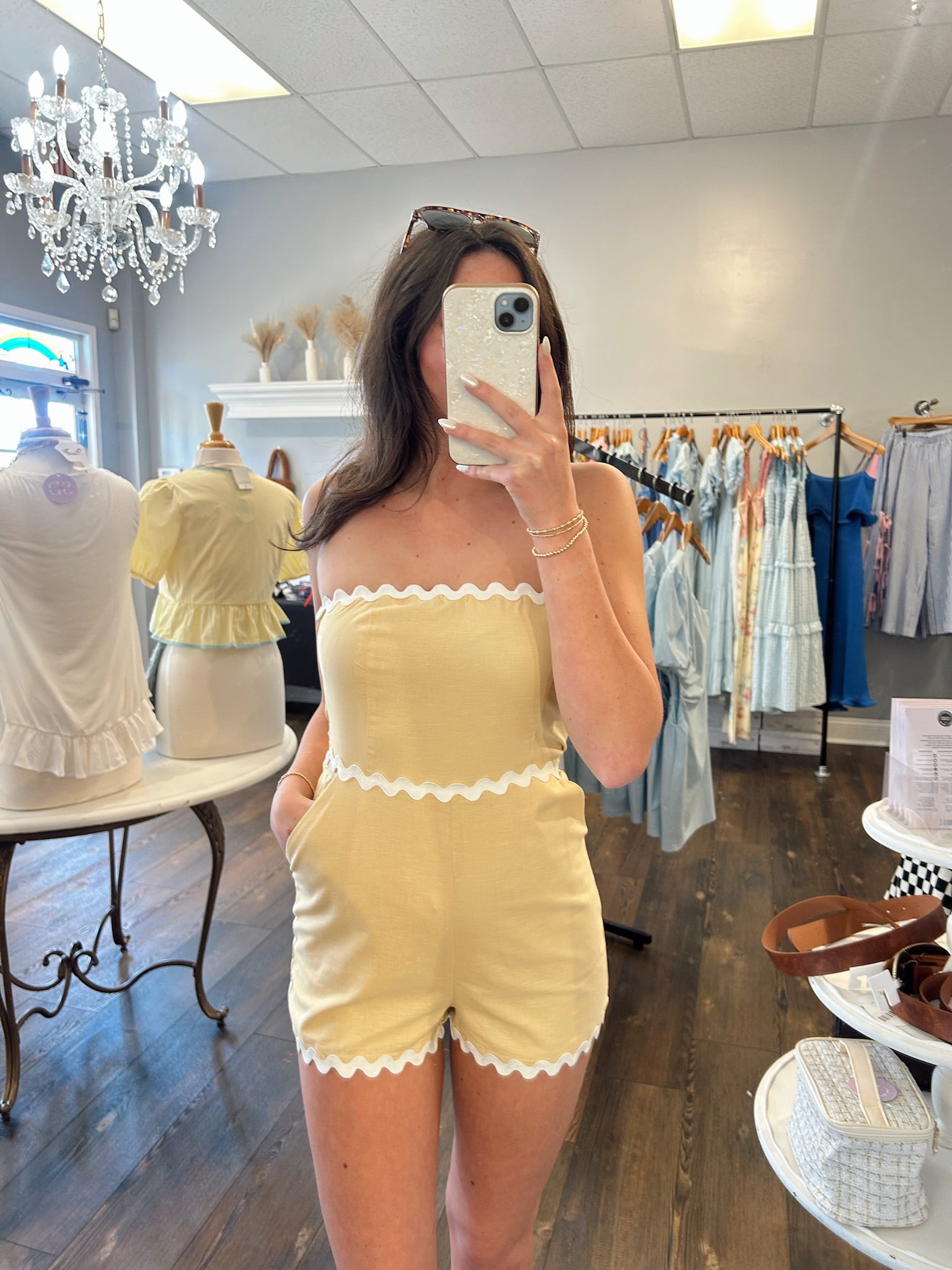 Ready to upgrade your summer style? The My Way Romper/ Butter has got you covered. The linen contrast trim strapless design adds a touch of sophistication while the side pockets provide practicality. Perfect for any adventure, this romper is a must-have for your wardrobe.