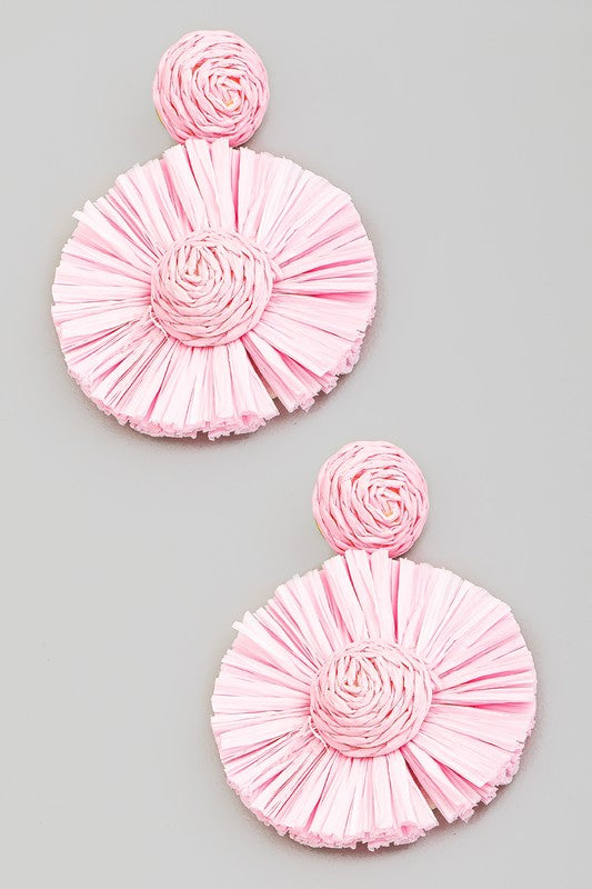 Elevate your style with our unique Paper Disc Dangle Earrings. Each pair features a stunning braided stud made from 100% raffia in your choice of 4 colors. The dangle design adds movement and interest to any outfit. Upgrade your accessory game now.