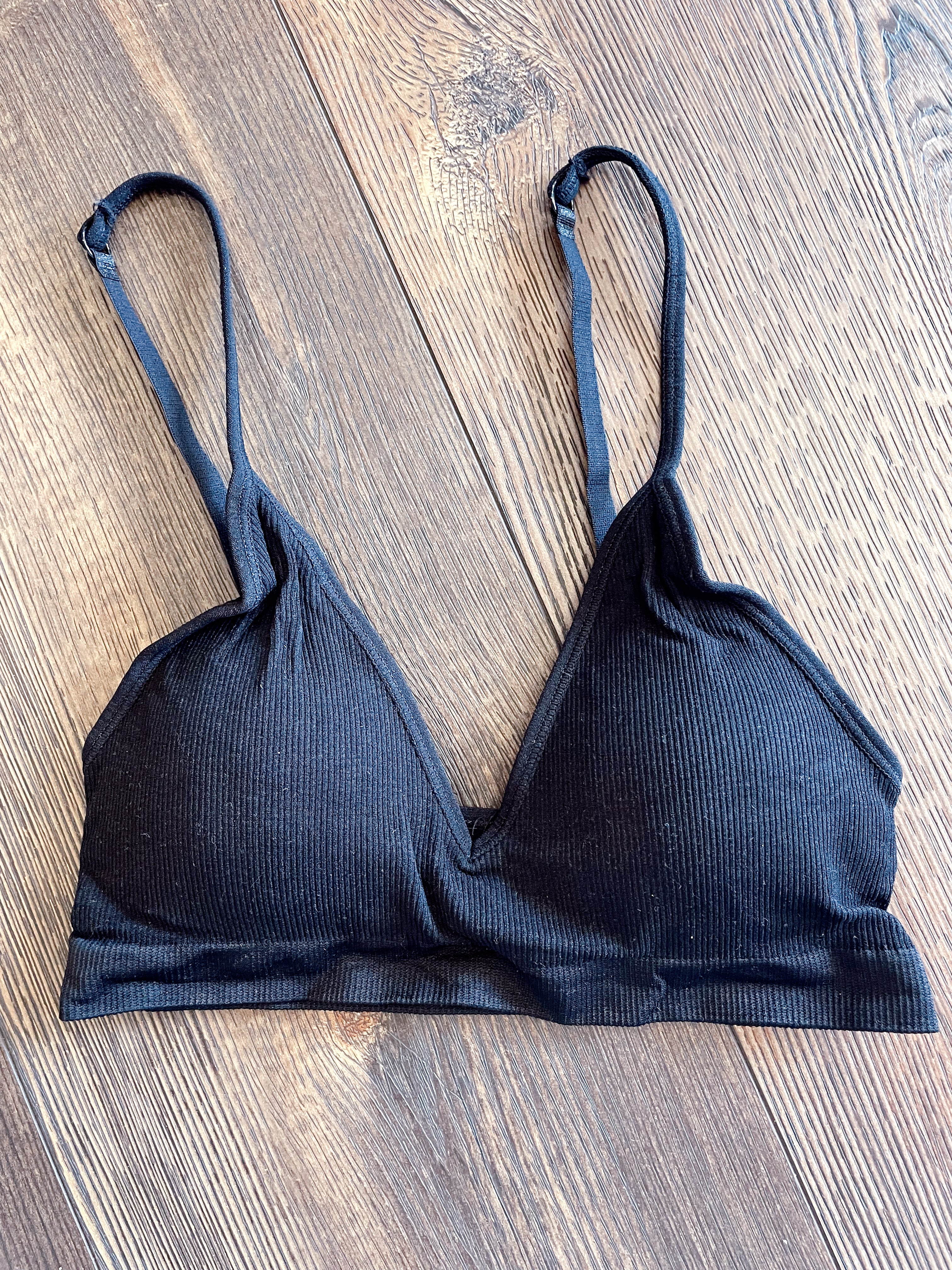 Experience ultimate comfort and style with our Ribbed Seamless Bralette. The deep V-neck silhouette, thin adjustable shoulder straps, and removable padding provide a perfect fit for sizes 32A-36C. Made with 88% Nylon and 12% Spandex, this pullover style bralette offers seamless ribbed design for a sleek and effortless look.