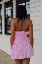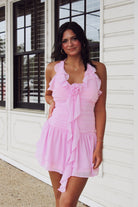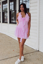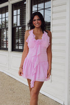 Take a daring step and stand out in our Ruffled Rosette Dress! This mini dress features shirring and rosette accents, adding a touch of boldness to your wardrobe. With ruffles that catch the eye and a flattering fit, feel confident and fearless in this unique pink dress.