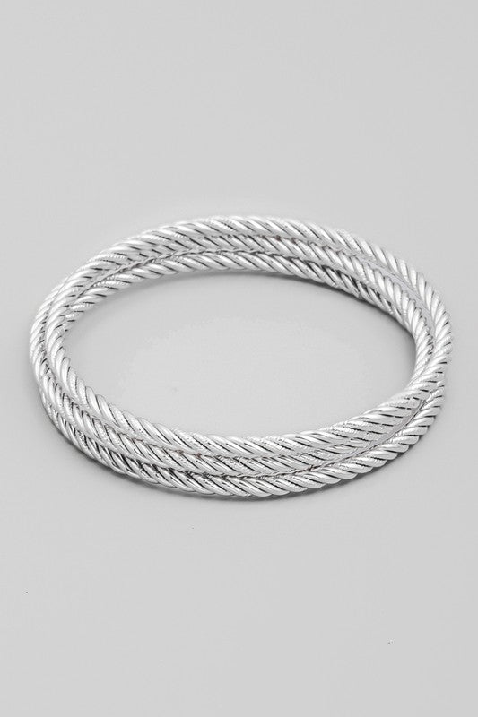 Stainless Steel Twisted Bangle Bracelet Set/ 2 Colors