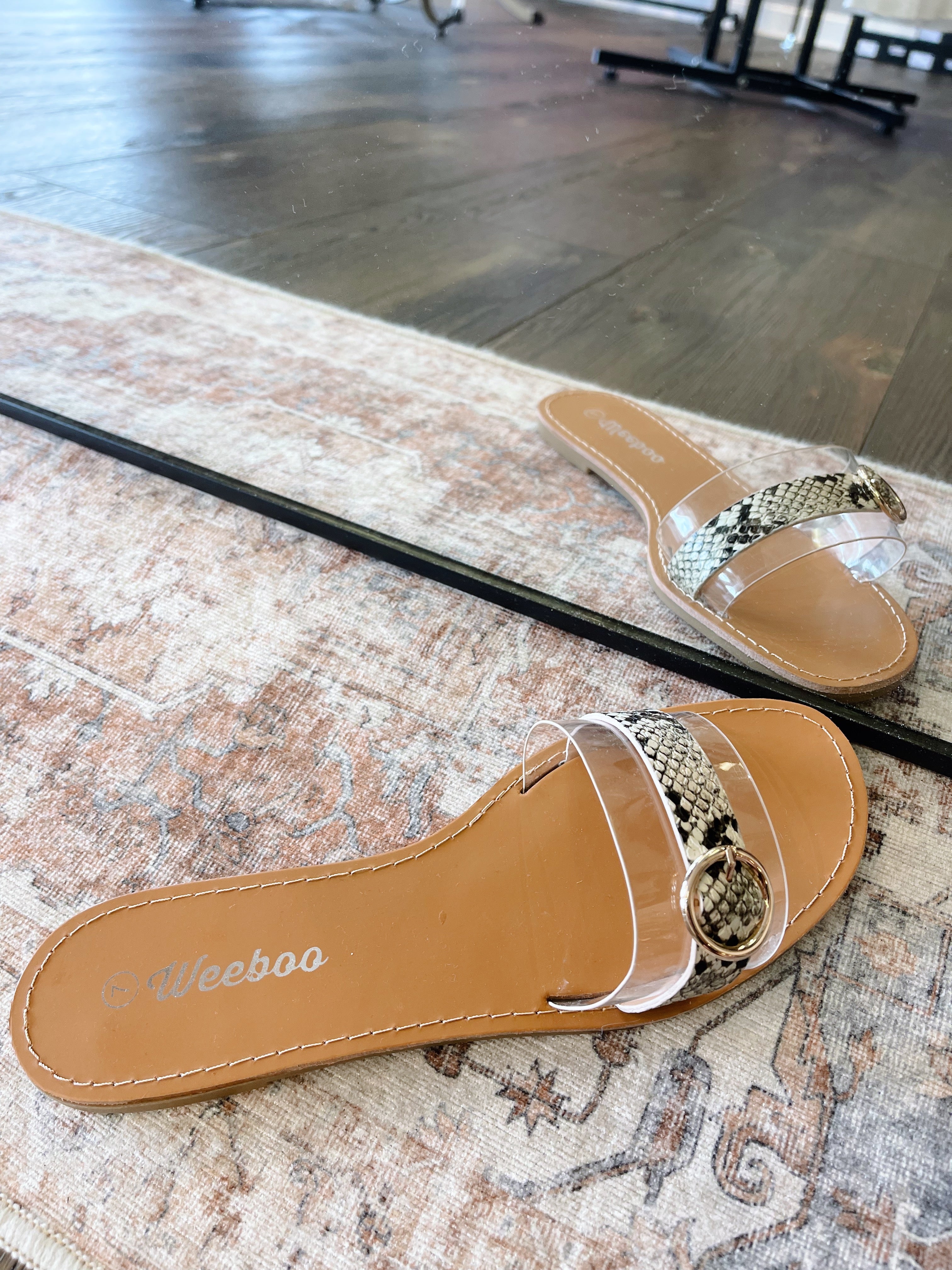 Add a touch of luxury to your wardrobe with our Snake Skin Flat in Clear. With its transparent design, this shoe provides a modern and sophisticated look. The clear material effortlessly elongates the legs and adds a unique twist to any outfit. Upgrade your style with these elegant and exclusive flats.