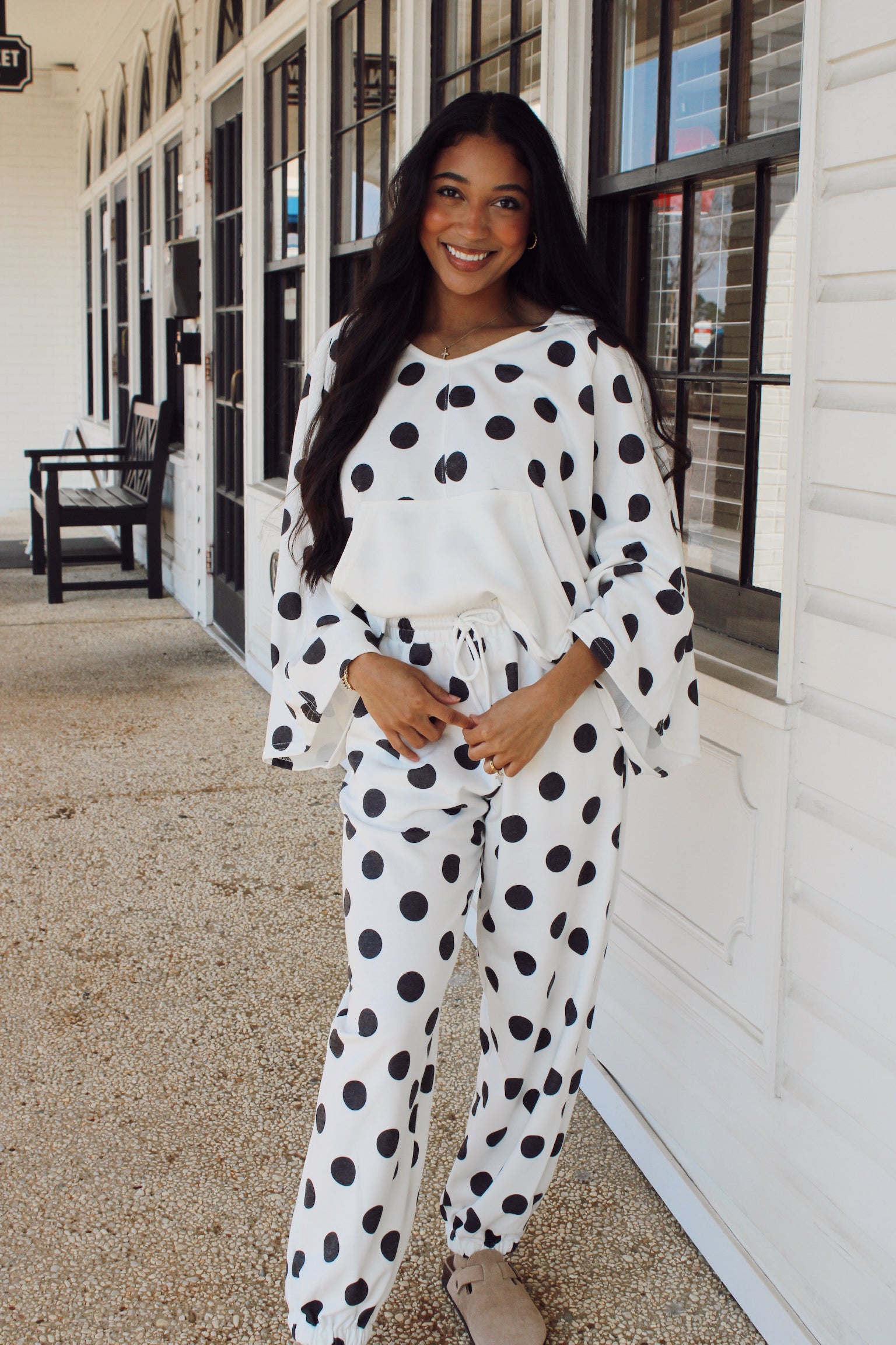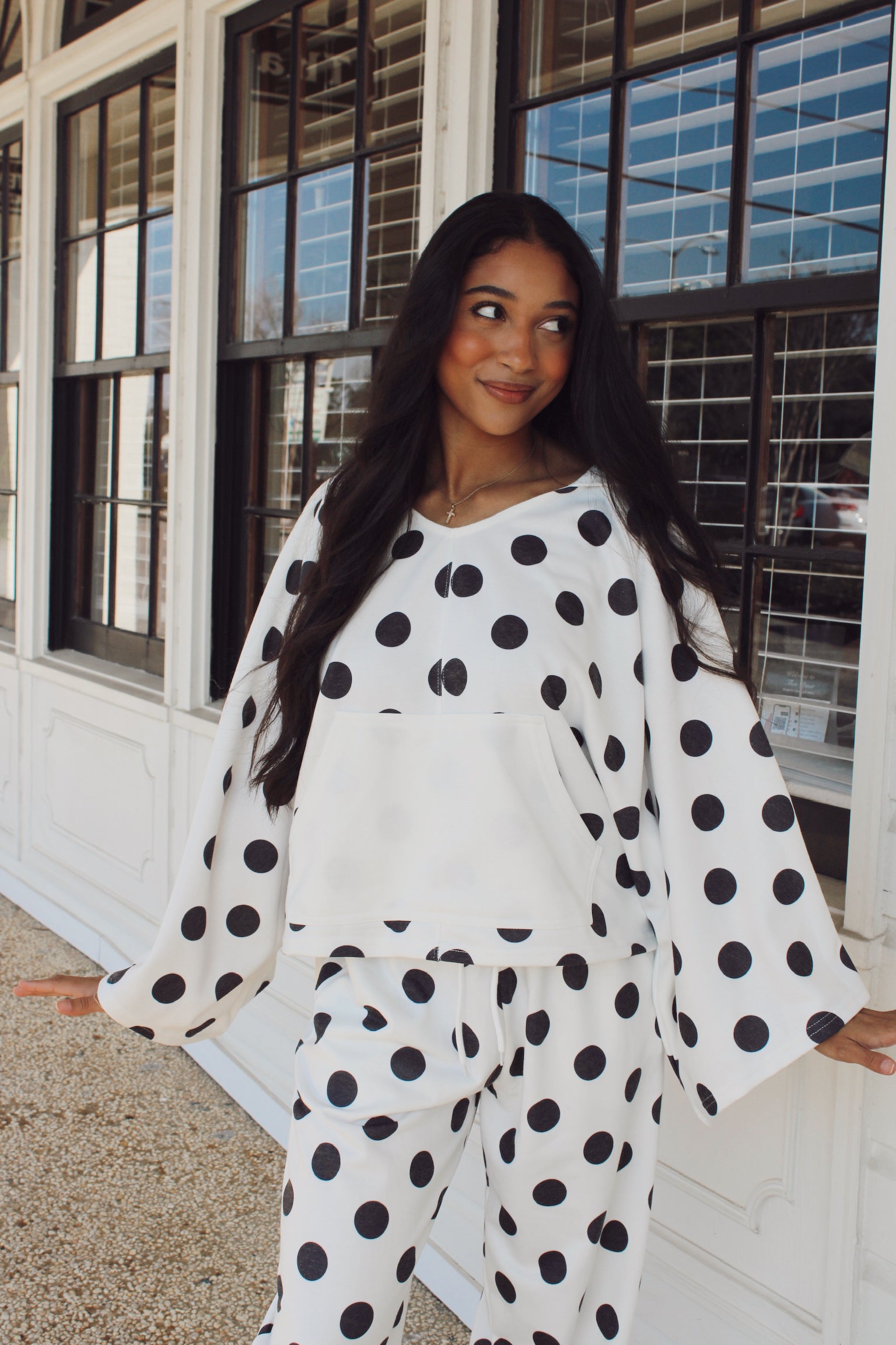 Polka Dot Hoodie/ Ivory+Black
