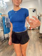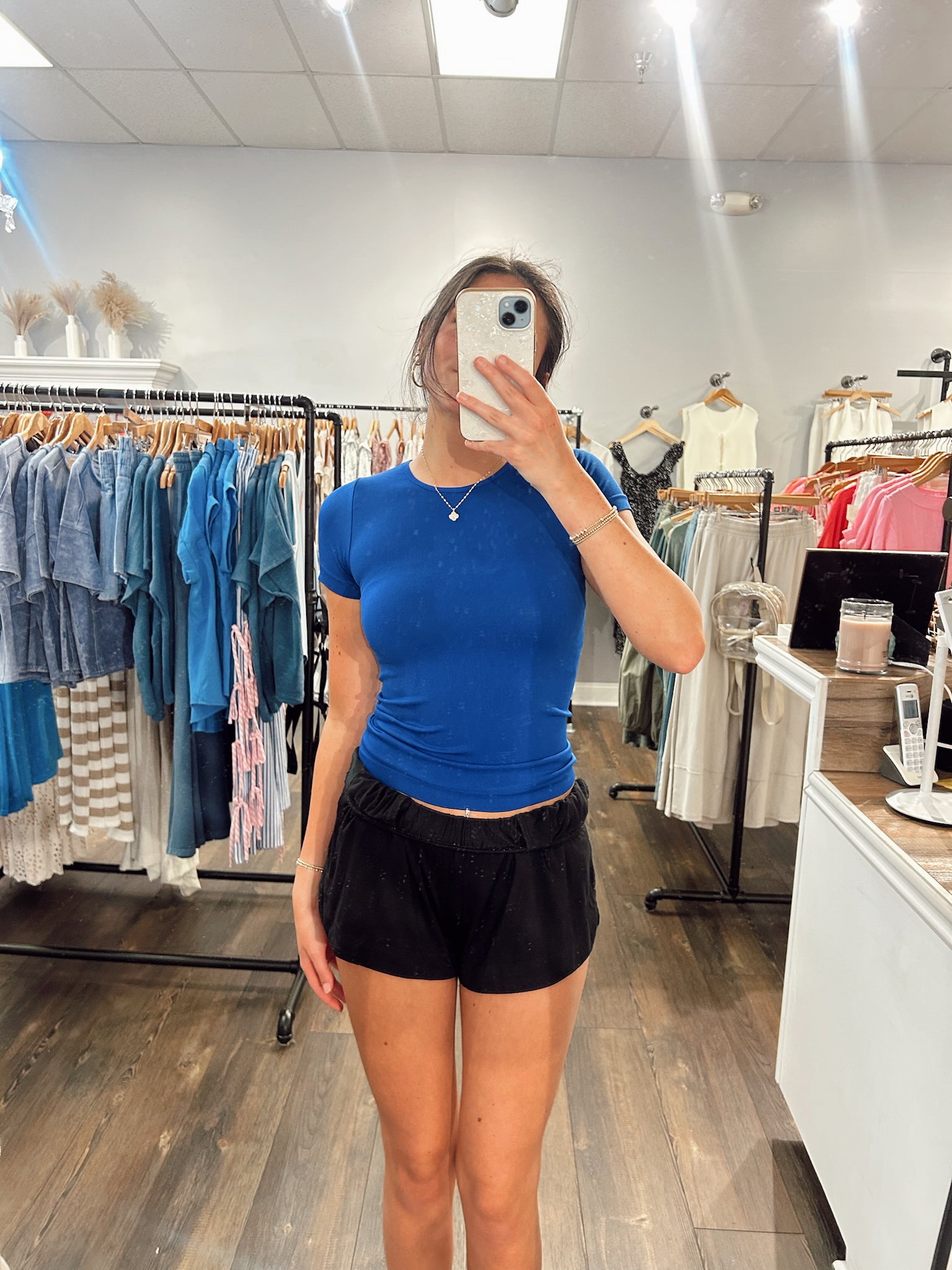 Stay comfortable and stylish with the Ready To Go Athletic Top. This seamless top features a basic round neck and short sleeves, crafted with 92% polyester and 8% spandex for the perfect combination of stretch and breathability. Versatile and essential, it's a must-have for your wardrobe.