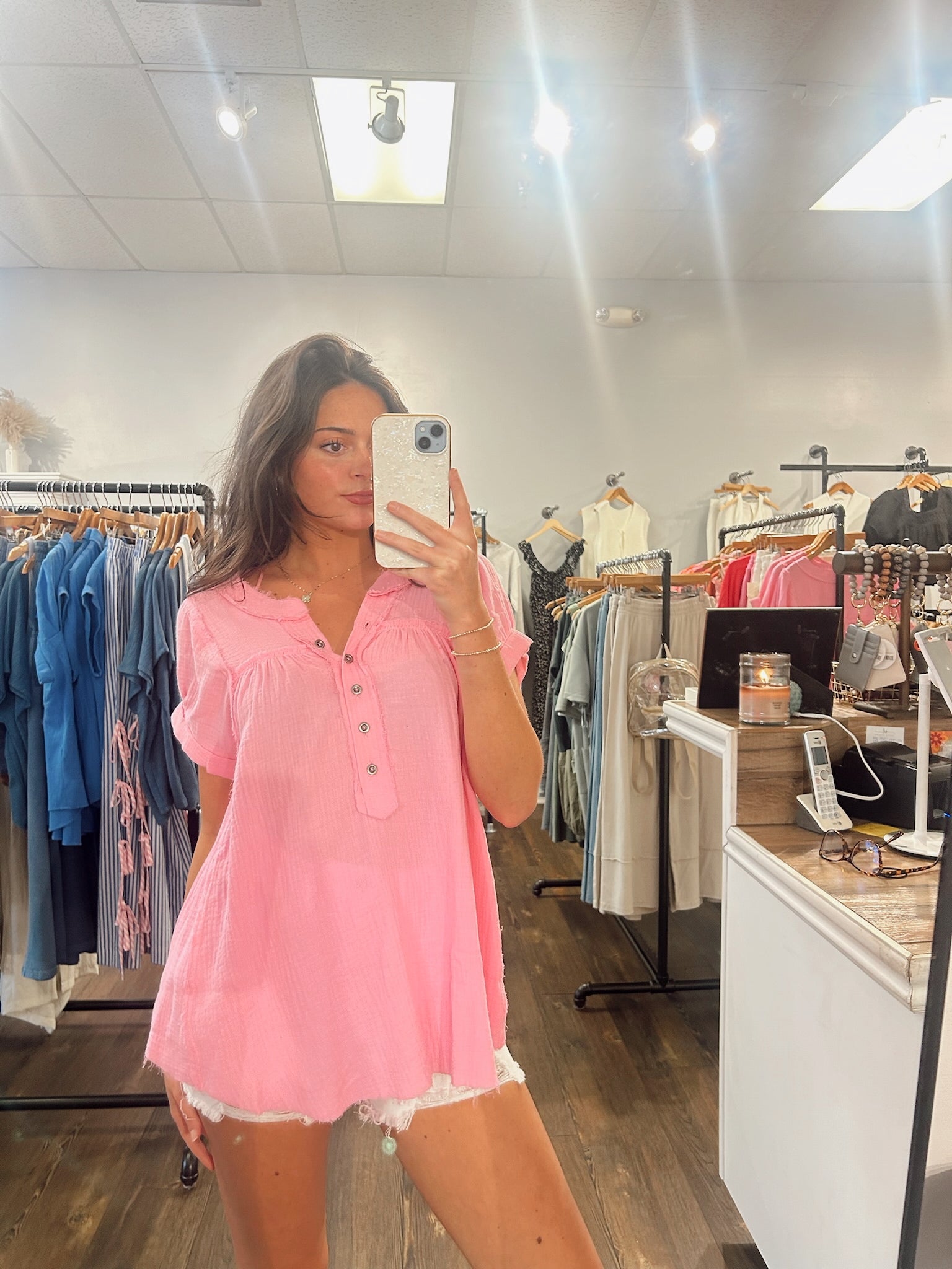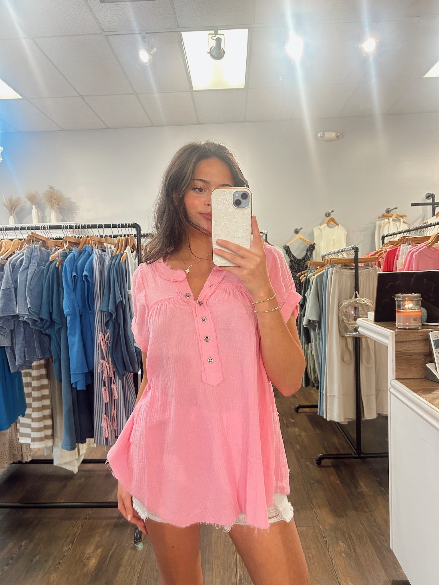 Take A Look Double Gauze Top/ Pink