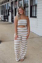 Looking for a stylish and versatile outfit? Look no further than our Tell It All Striped Pants Set! Featuring a trendy striped tube top and matching pants, this two piece set is perfect for any occasion. Elevate your wardrobe and turn heads with this must-have ensemble.