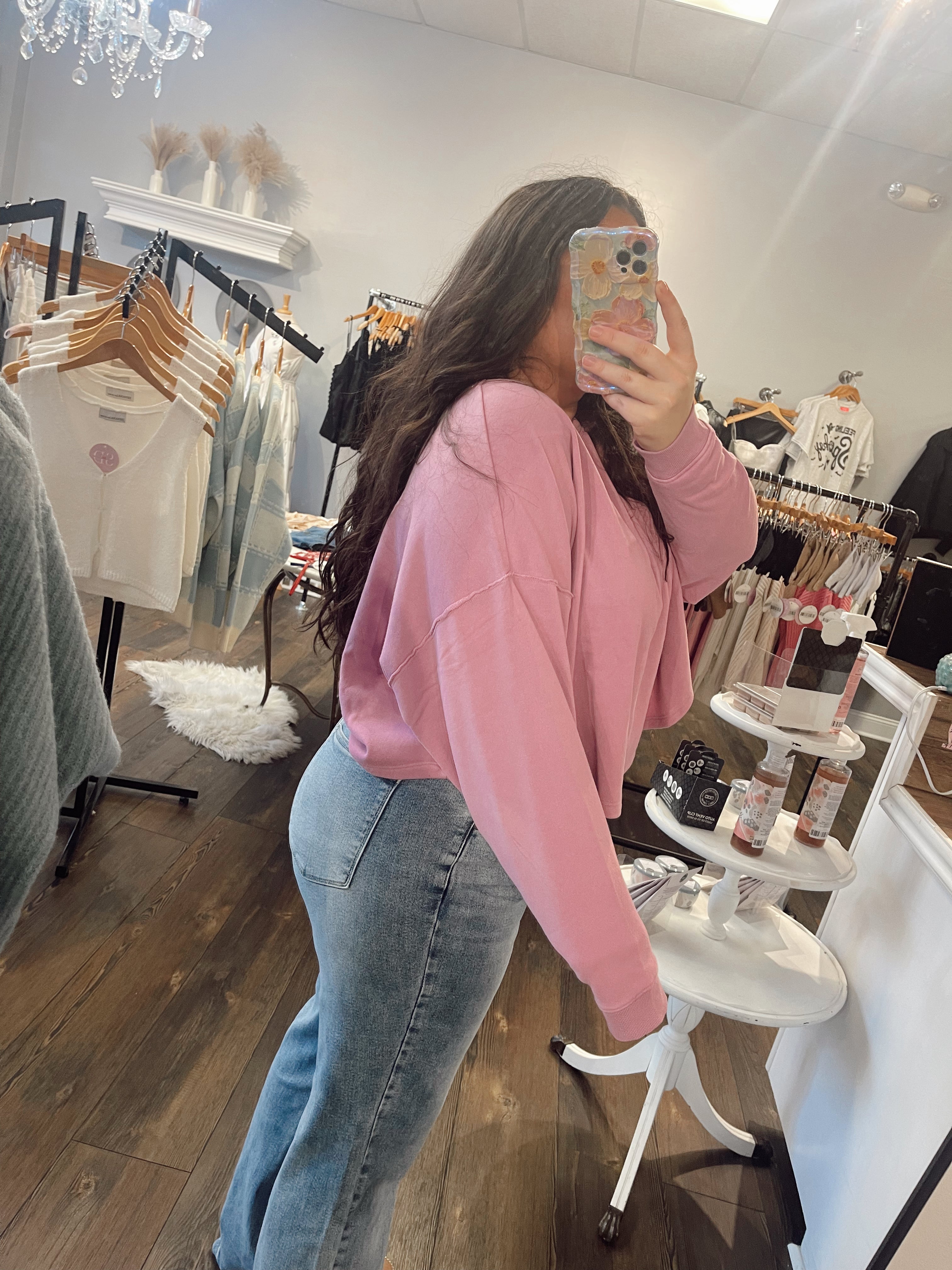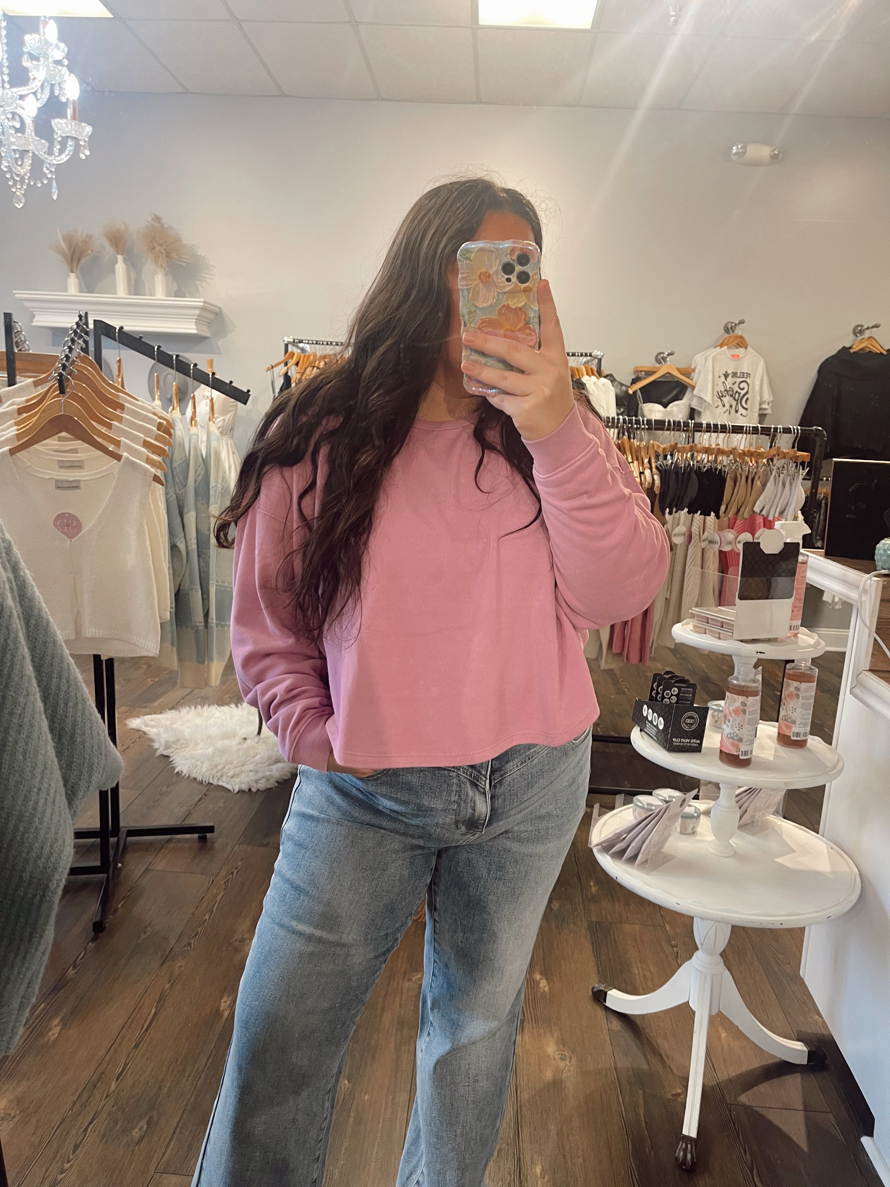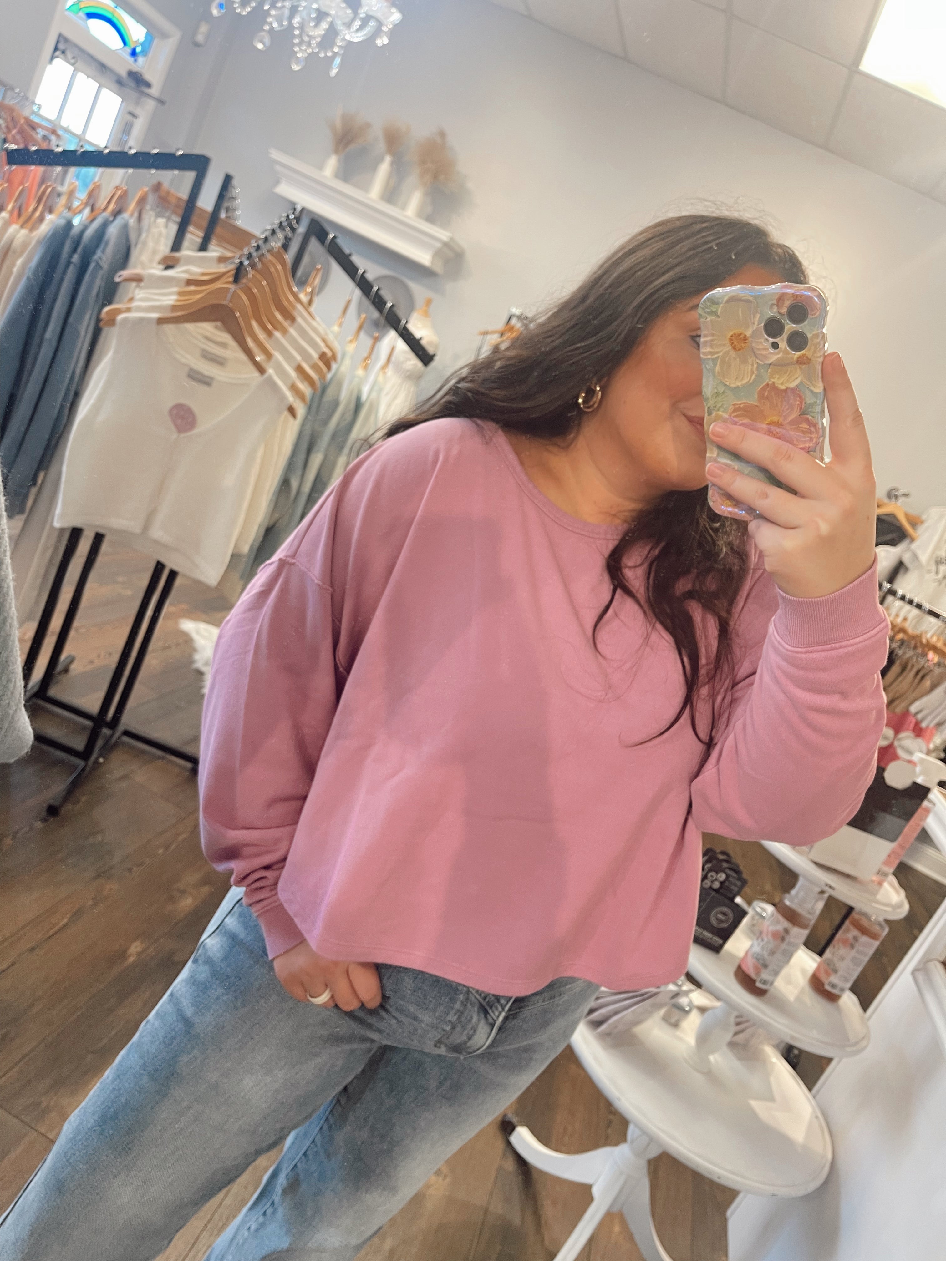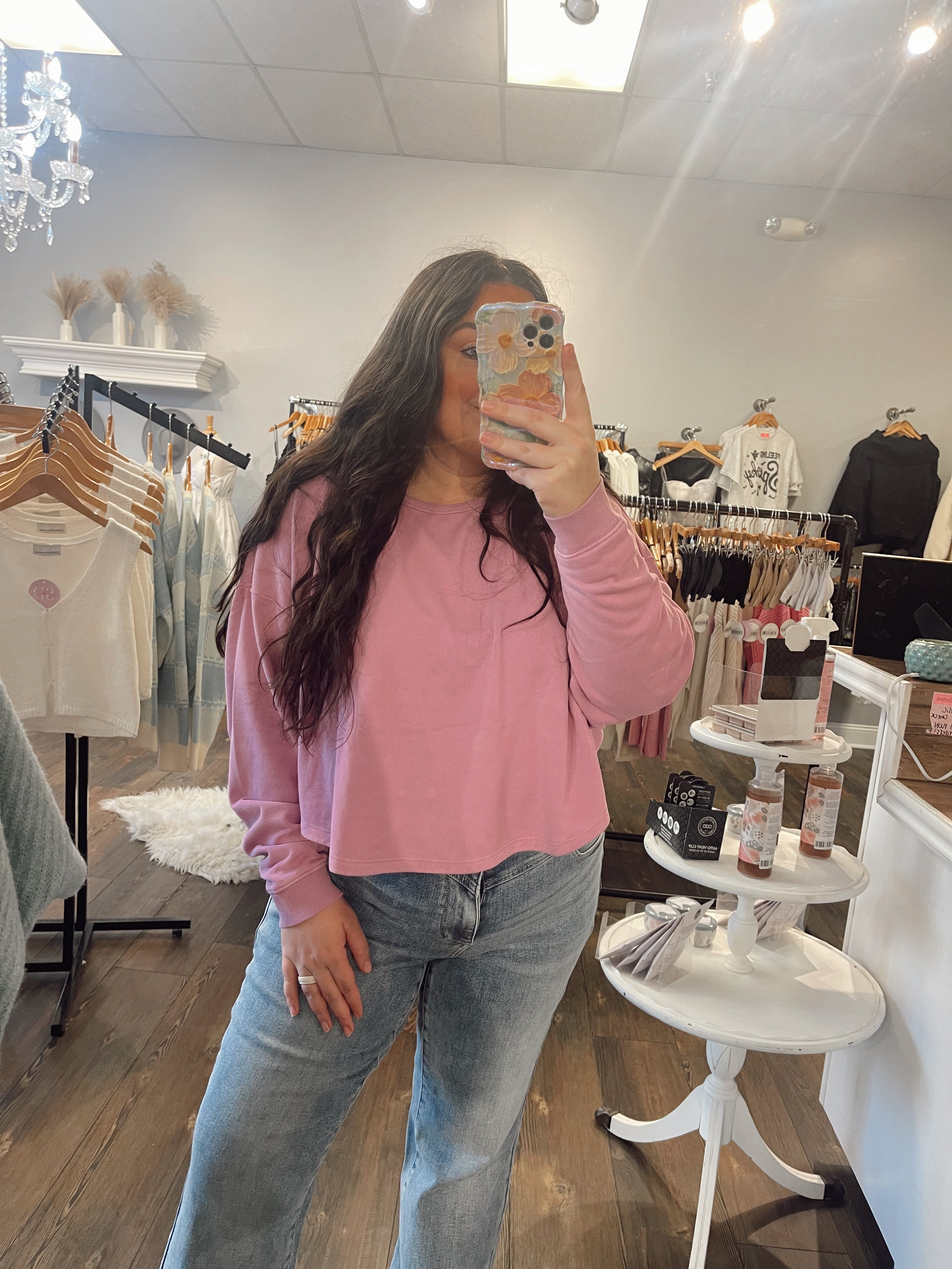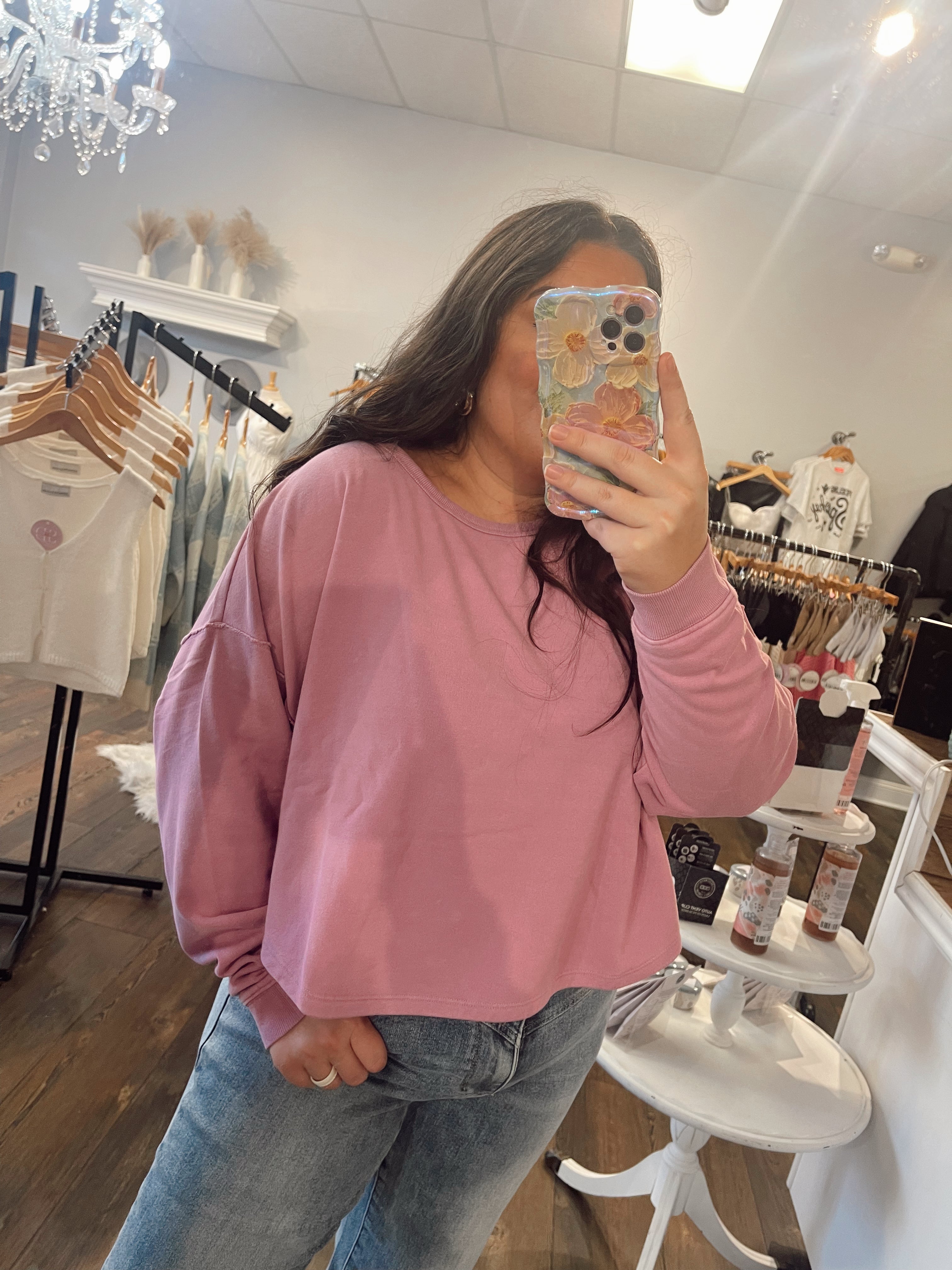 Curvy: Oversized Front Pocket Raw Edge Top/ Ash Grey