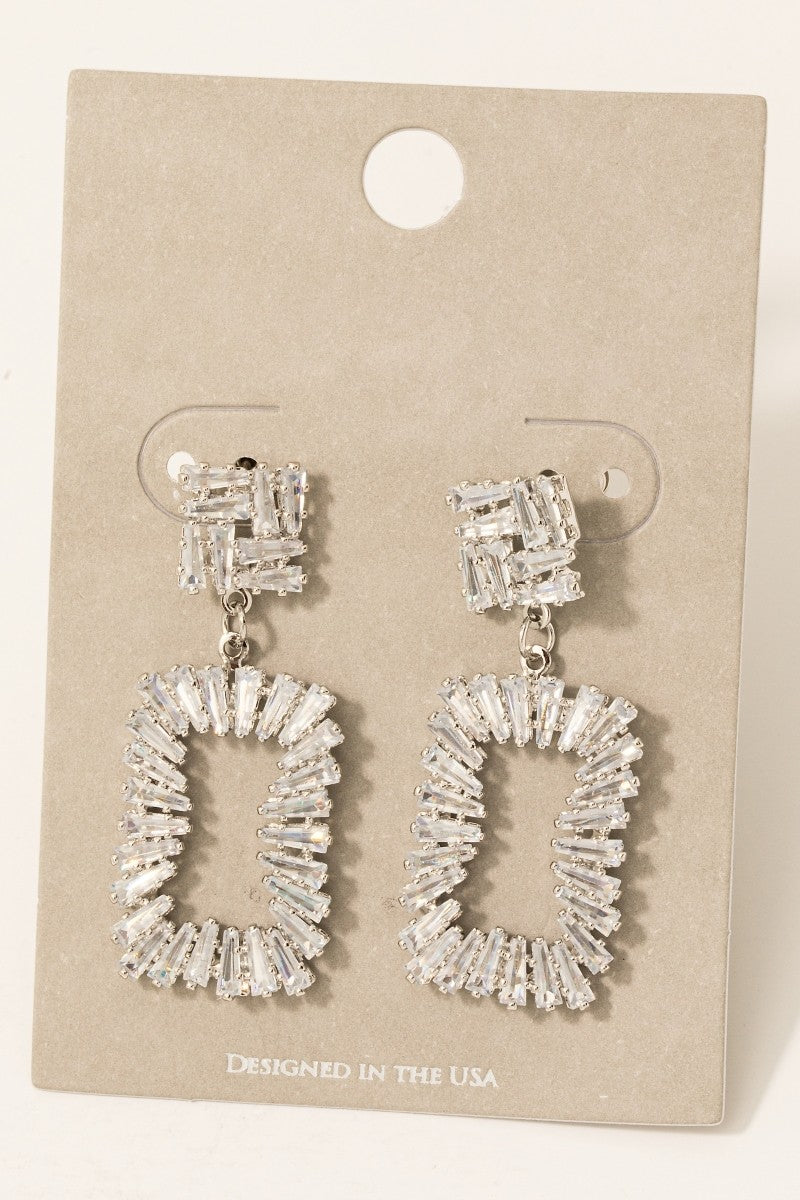 Baguette Pave Rectangle Dangle Earrings/ Silver