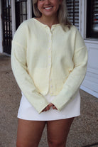 Brighten your look with the Classic Cardi in cheerful yellow! This lightweight button-down layers easily over any outfit, adding a pop of sunny color without weighing you down. Perfect for breezy days or cozy evenings, it’s a playful staple that brings comfort and style together effortlessly.