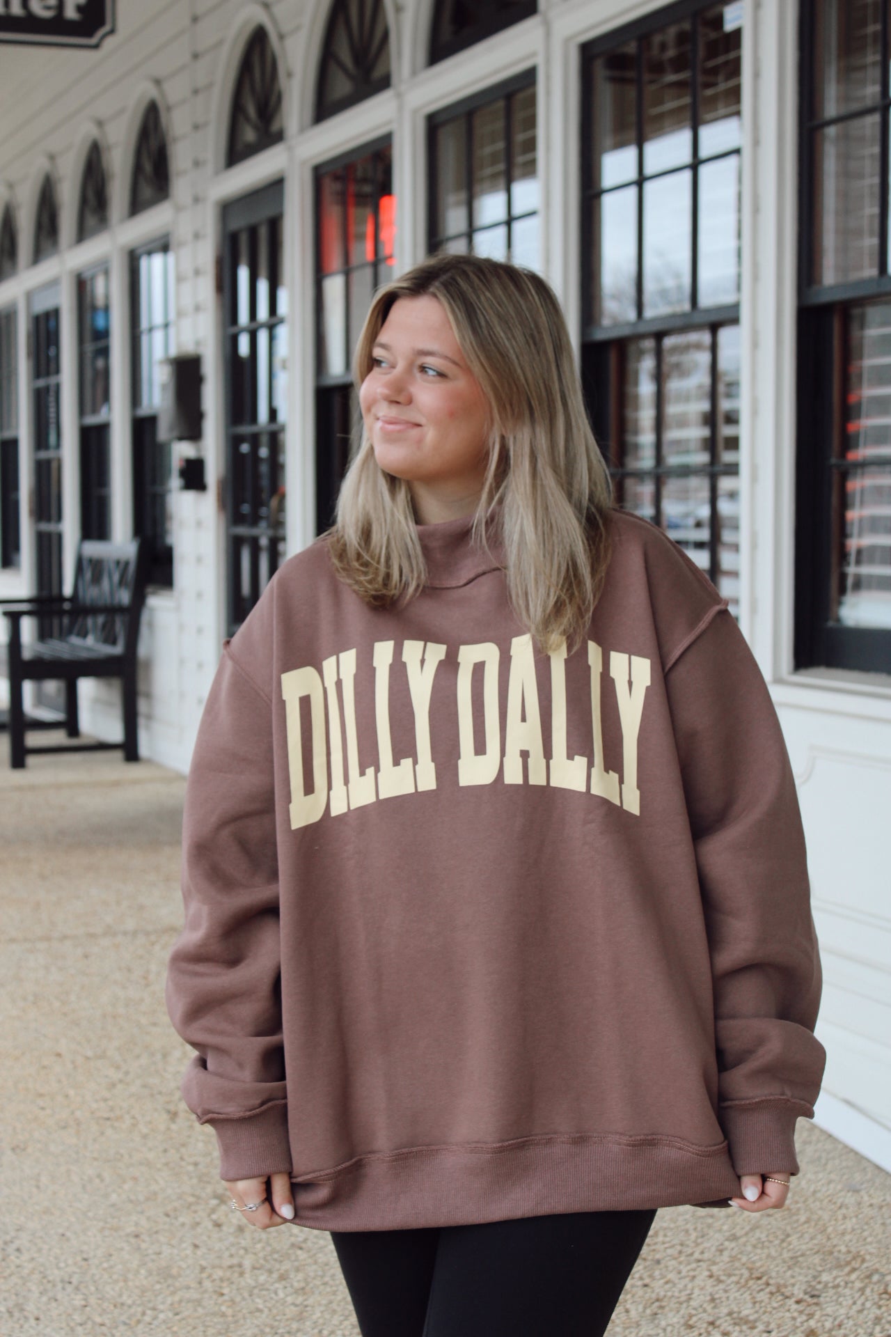 Dilly Dally Mockneck Sweatshirt/ Coffee