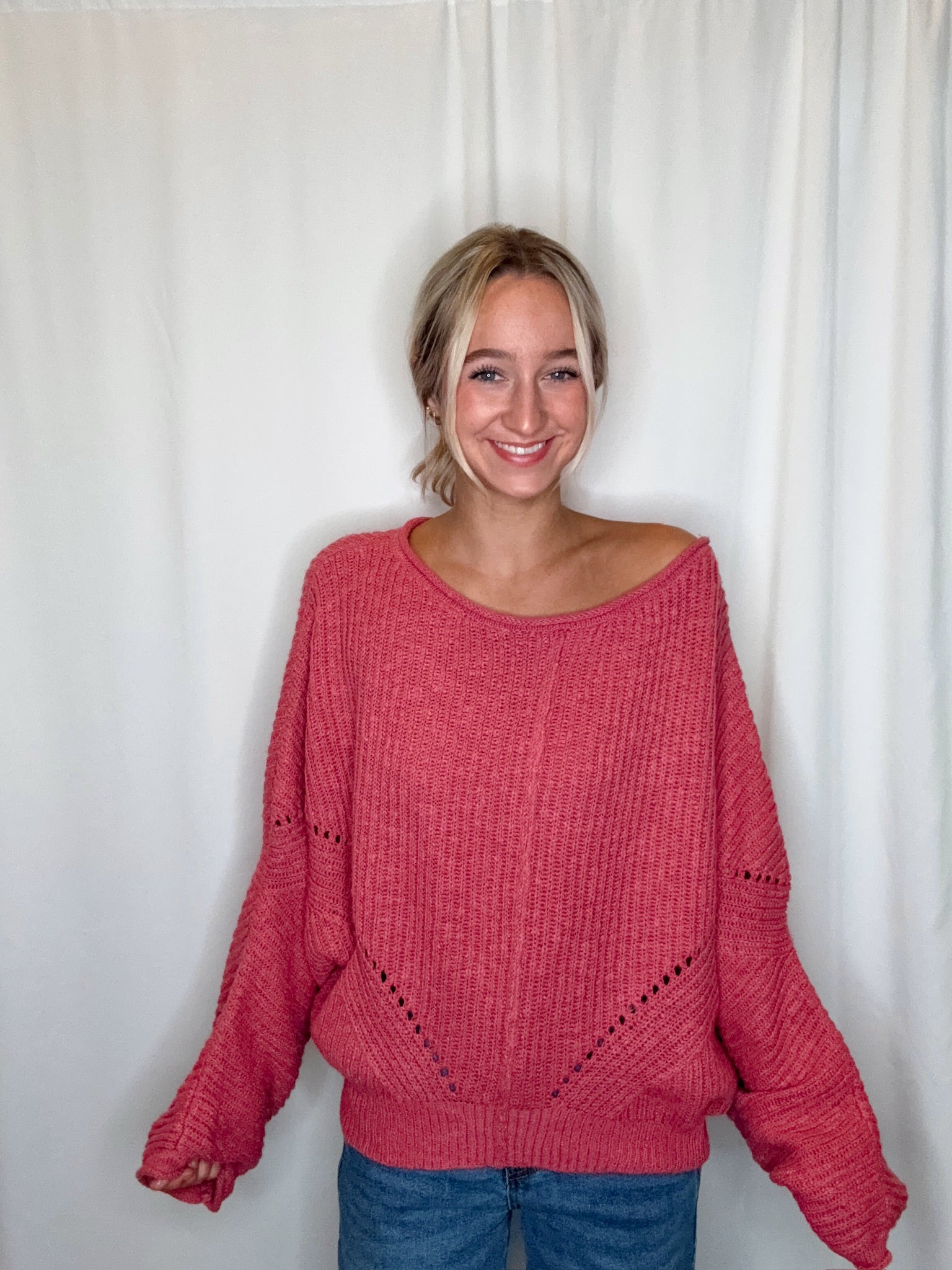 Face The Day Drop Shoulder Sweater/ Rose