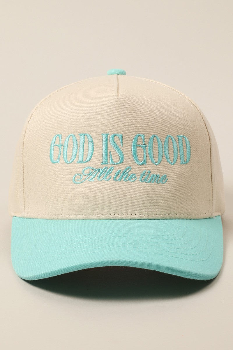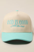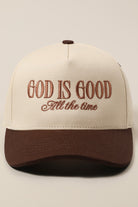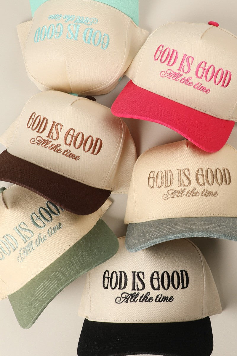 Express your faith and stay stylish with our God Is Good Trucker Hat! Featuring bold "GOD IS GOOD All the time" embroidery and a classic 5-panel two-tone design, this hat is a must-have for any believer. Made with 100% cotton canvas and embroidered in the USA, this hat also boasts an adjustable snapback closure for a comfortable and personalized fit. Spread the message of positivity and embrace the power of faith with this timeless accessory from Base Cap by CC.