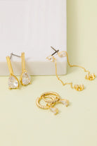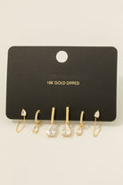This pair of earrings features a fashionable gold dipped mixed cubic zirconia tear drops set style. Discover the perfect balance of subtlety and flair as this pair of earrings effortlessly completes your look.