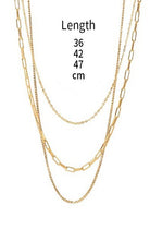 Experience luxury with our Layered Necklace. Crafted from 18K stainless steel, this tarnish-free necklace maintains its shine and impeccable condition over time. Its triple layered design of elegant link and box chains exude sophistication. Its hypoallergenic properties make it perfect for those with sensitive skin or metal allergies.