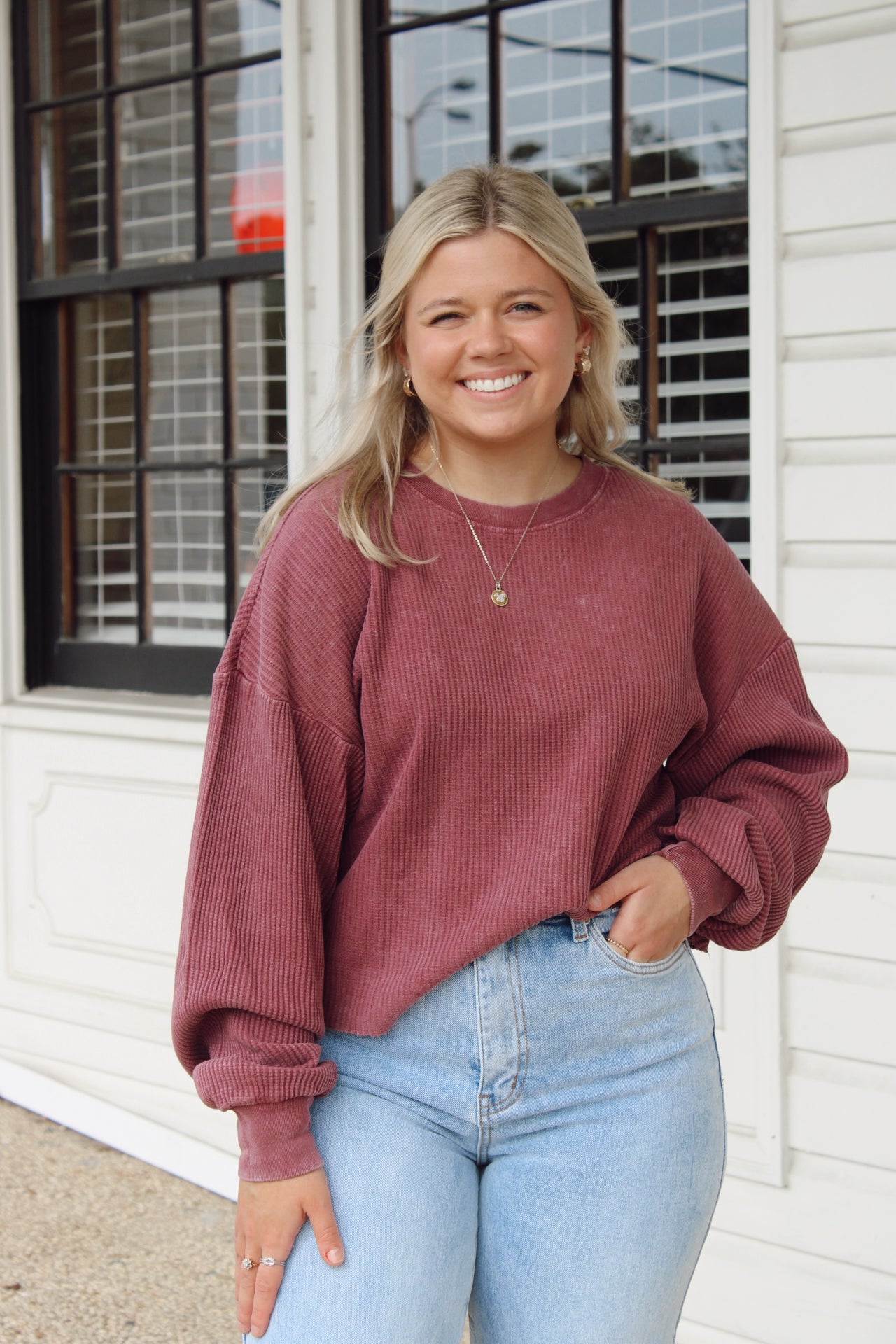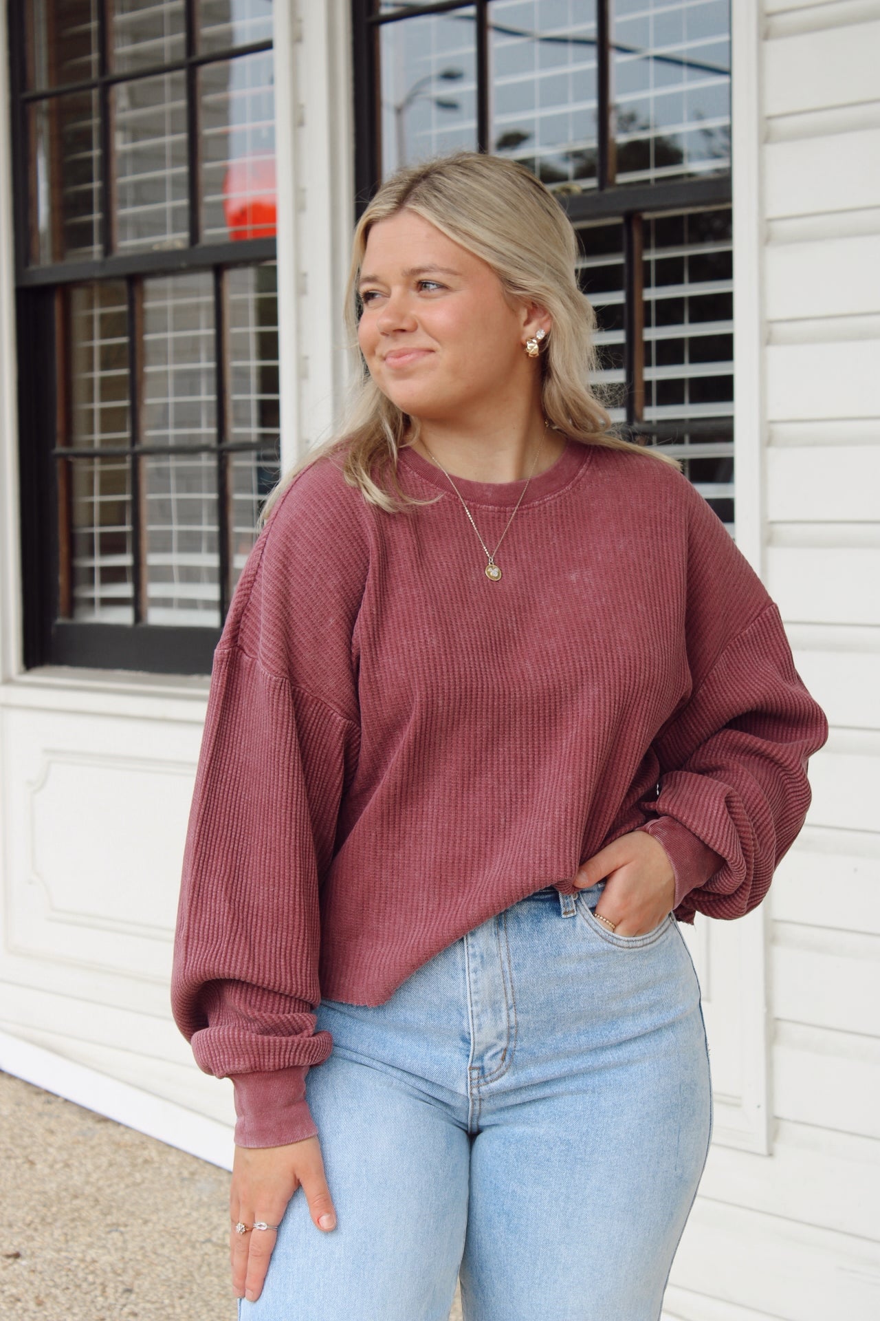Crafted from lightweight knit fabric, the Next Time Top in dark cherry offers breathable comfort with a refined silhouette. Its long sleeves provide coverage while maintaining a delicate feel, and the slightly cropped length enhances styling versatility, making it an ideal layering piece or standalone option for a polished, expert look.